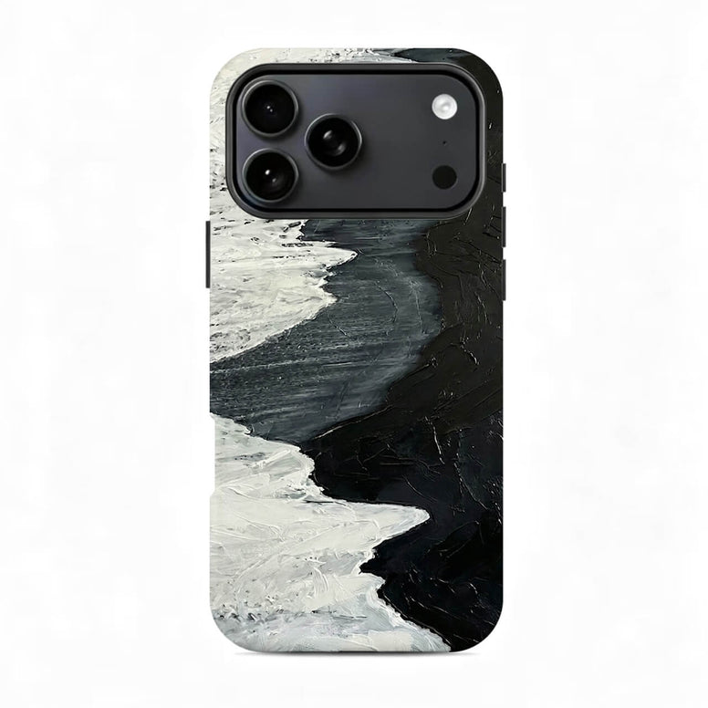 Inspired by the meeting point of land and sea, this phone case captures the quiet beauty of a beach shoreline through abstract oil painting textures. Flowing brushstrokes and layered contrasts evoke waves washing onto dark sand, creating a sense of movement, depth, and calm.